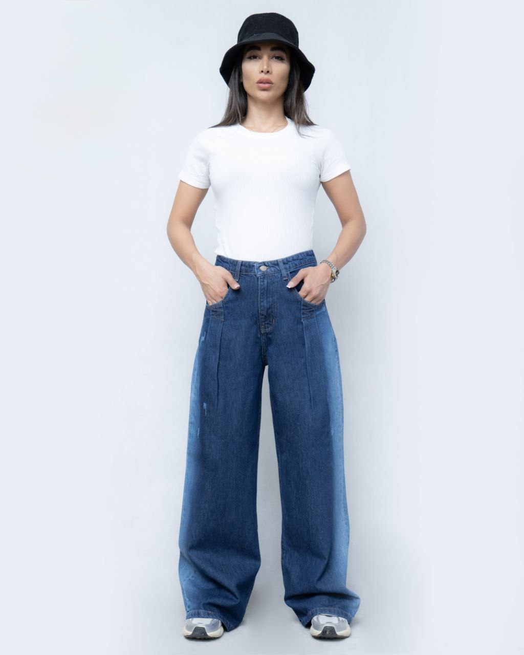 شلوار جین مدل بیگ بگ کمر پیله دار جنس ترک